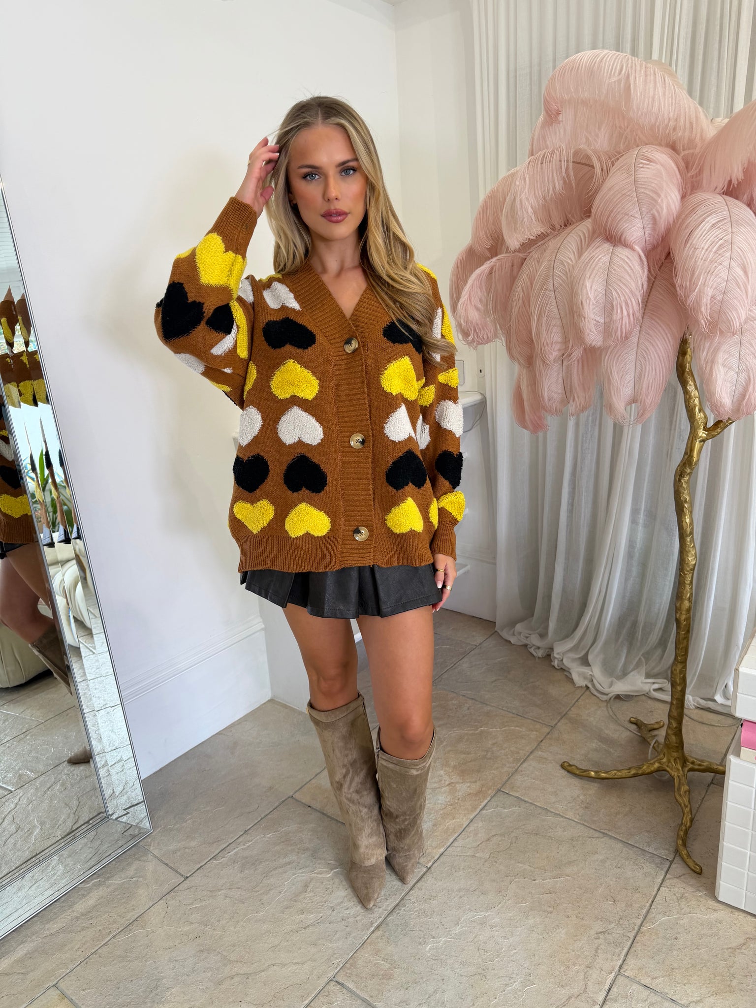 Stay cozy and stylish this autumn with our Maple Women's Oversized Love Heart Knit Cardigan. This knitwear piece is perfect for adding a touch of warmth and love to your outfit.